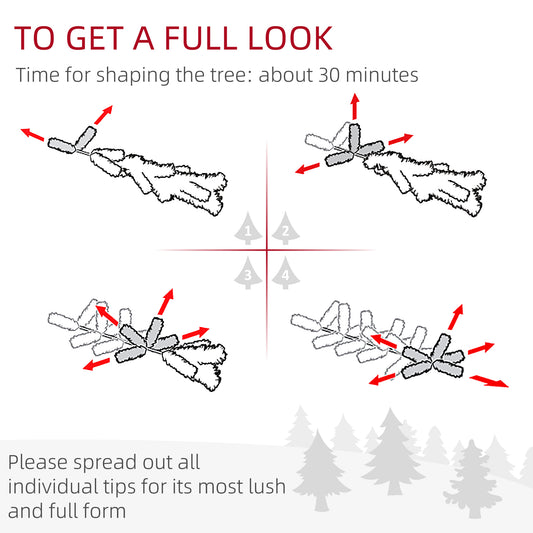 HOMCOM 7.5ft Tall Prelit Artificial Christmas Tree Holiday Décor with 1518 Branches, 500 Warm White LED Lights, Auto Open, White