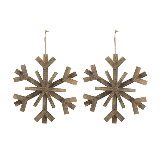 17.7' x 17.7' Large Fir Wood Snowflake Ornaments, Hanging Home Decor Accents for Christmas Tree, Wall Art, Holiday Display, Set of 2