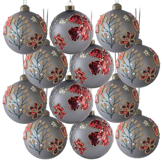 D3' Christmas Ball Ornaments, Glass Decorative Hanging Ball Christmas Tree Ornaments for Holiday Party Decorations, Set of 12