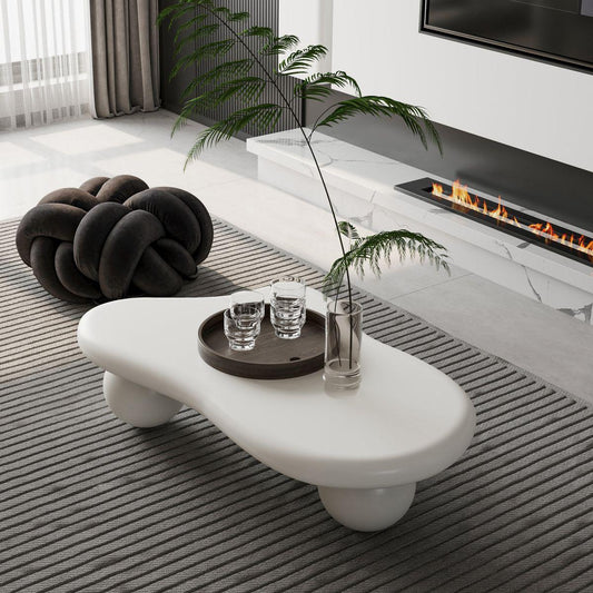40 Inch Cloud Shaped Coffee Table with 3 Ball Legs for Living Room, Cream White