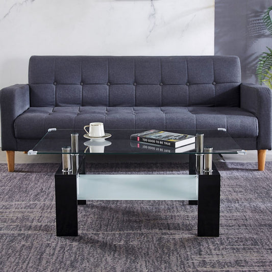 Tempered Clear Glass Coffee Table, 2-Layers Coffee Table Living Room Center Table