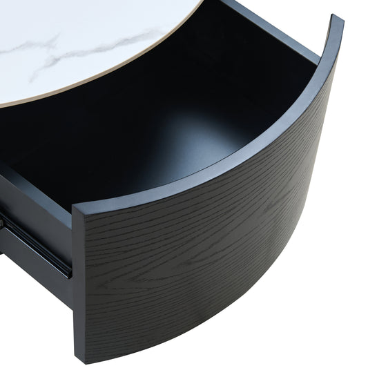 Modern Round Movable Coffee Table with Casters, 2 Drawers, Marble Pattern Sintered Stone Top, Black, 29.5'