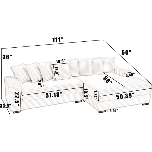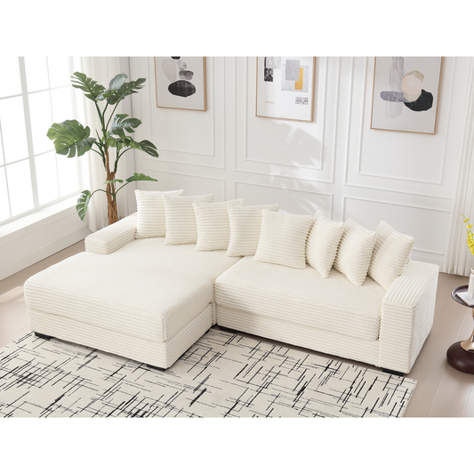 Oversized Two-Piece Couches, L Shaped Sofa, Corduroy, Left Chaise Daybed,with Armrests,Eight Throw Pillows,Corner Sofa,Easy To Assemble, Beige