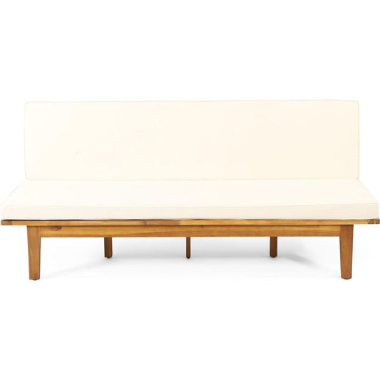 Full Size Wood Daybed with Fence Guardrails and 2 Drawers, Split into Independent Floor Bed & Daybed, Natural
