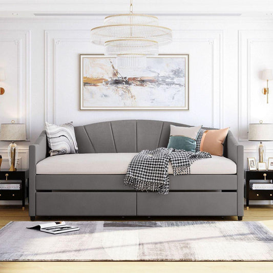 Upholstered daybed Twin Size with Two Drawers and Wood Slat, Gray