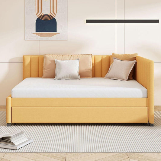 Full Size Upholstered Daybed with Trundle Sofa Bed Frame No Box Spring Needed, Linen Fabric(Yellow)