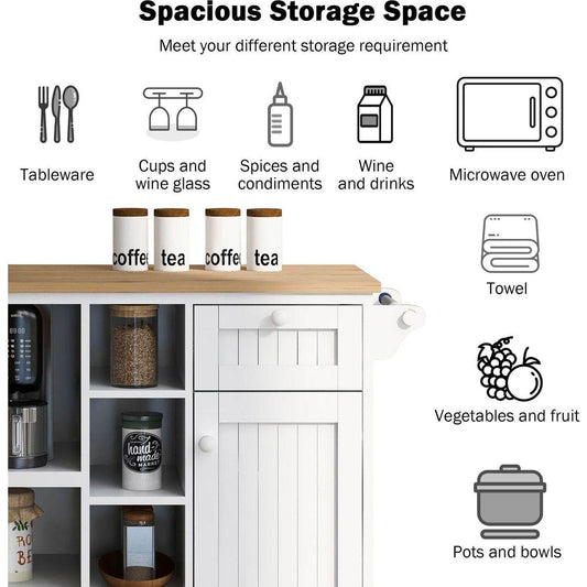 Kitchen Island Cart with Storage Cabinet and Two Locking Wheels, Solid wood desktop, Microwave cabinet, Floor Standing Buffet Server Sideboard for Kitchen Room, Dining Room,, Bathroom (White)