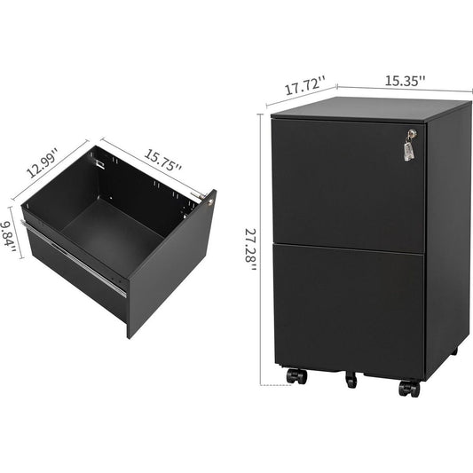 2 Drawer File Cabinet with Lock, Steel Mobile Filing Cabinet on Anti-tilt Wheels, Rolling Locking Office Cabinets Under Desk for Legal/Letter Size