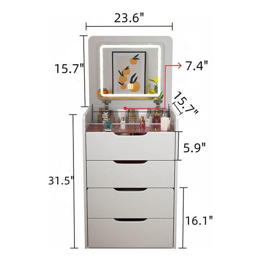 29.2' Small Size Left Drawer Desktop Vanity Table + Cushioned Stool, 2 AC+2 USB Power Station, Hair dryer bracket, Extra Large Touch Control Sliding LED Mirror, Tri-color Switching, Brightness Adjust