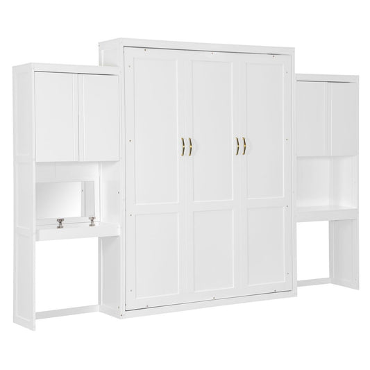 Queen Size Murphy Bed with Desk, Vanity and Cabinets, White