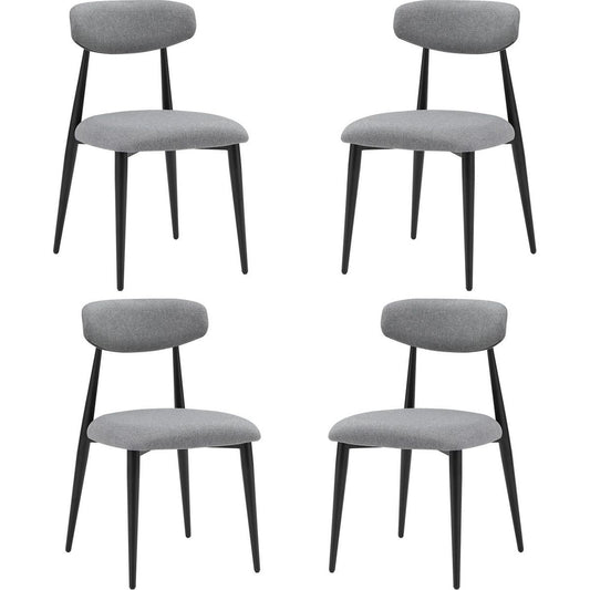 (Set of 4) Modern Dining Chairs, Curved Backrest Round Upholstered and Metal Frame, Grey