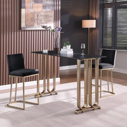 Woker Furniture Bar Stools Set of 2 Counter Height 26" Bar Stools with Back, Gold Brushed Barstools Modern Velvet Fabric Kitchen Stools for Counter Pub, Upholstered Dining Chairs - Black