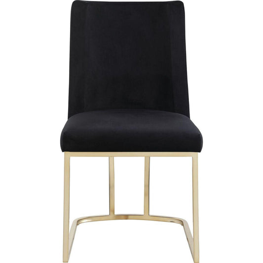 Dining Chairs, Velvet Upolstered Side Chair, Gold Metal Legs (Set of 2) - Black