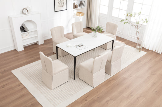 Linen Dining Chairs, Modern Fabric Side Chairs for Dining Room and Kitchen, with Padded Seat and Backrest, Upholstered Armless Chairs for Living Room, Set of 2 (Beige)