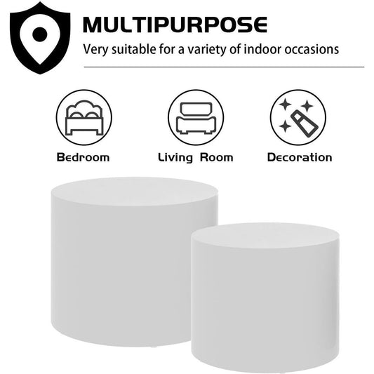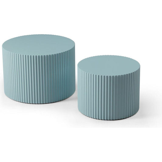 MDF Nesting Table Set of 2, Handcraft Round Coffee Table for Living Room/Leisure Area, Blue
