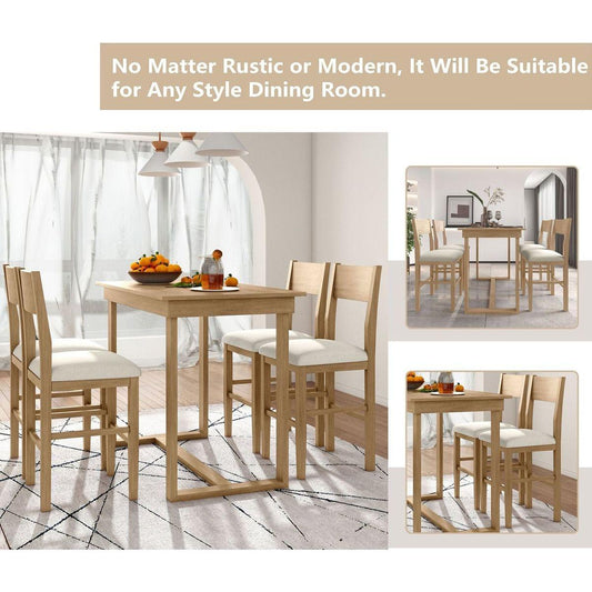 Farmhouse Counter Height 5-Piece Dining Table Set with 1 Rectangular Dining Table and 4 Dining Chairs for Small Places,Brown
