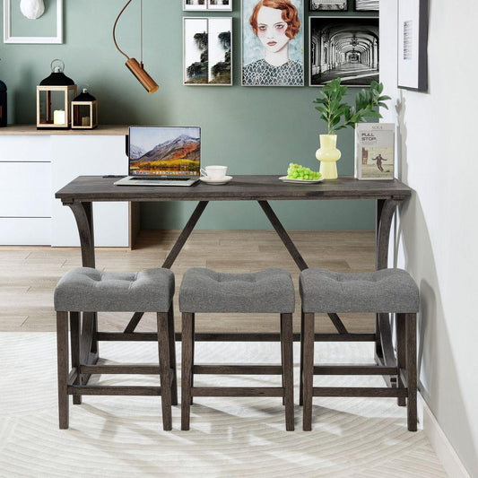 4-Piece Bar Table Set with Power Outlet, Dining Bar Table and Chairs Set,Bar Table Set with 3 Padded Stools for Living Room, Dining Room, Game Room, Dark Gray