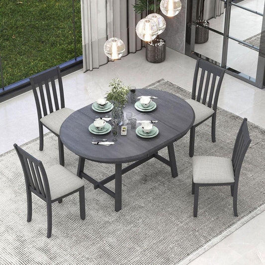5-Piece Wood Dining Table Set Round Extendable Dining Table with 4 Dining Chairs, Dining Room Table Set for 4 person for Dining Room (Gray)