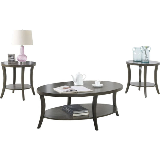 Perth Contemporary Oval Shelf Coffee Table Set, Gray