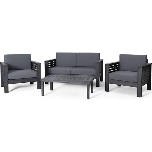 Acacia Wood Outdoor Loveseat and Coffee Table Set with Cushions, Dark Gray