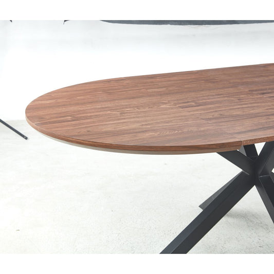 Dining Table with cross metal leg and tempered glass,Modern Space Saving Kitchen Table for Living Room,walnut color metal legs