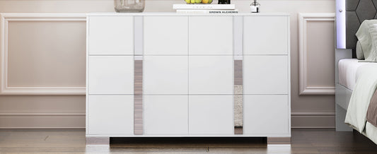 Elegant Modern Dresser with Metal Foot,Mirrored Storage Cabinet with 6 Drawers for Bedroom,Living Room,White (Old SKU: WF319354AAK)