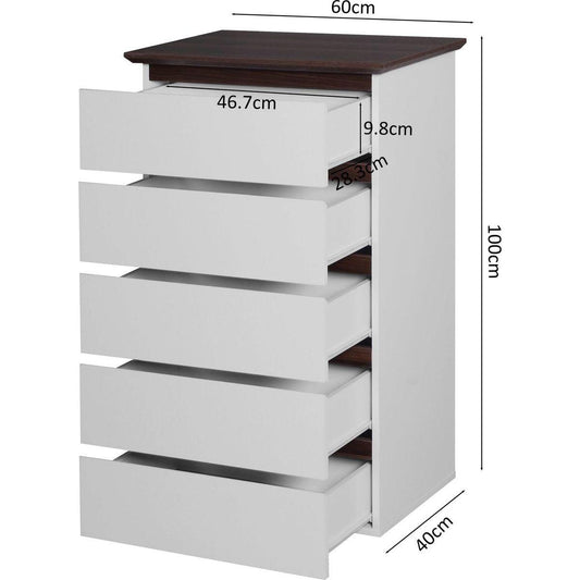Tall White Dresser for Bedroom, Mid Century Modern Dresser with Drawers, 5 Drawer Dresser with Wood Color Top, Small Dresser for Kids Bedroom, Living Room