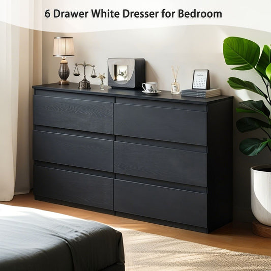 6 Drawer Black Dresser, Modern Bedroom Dresser with Spacious Countertop, Wood Storage Cabinet with Concealed Handles & 6 Deep Drawers for Bedroom, Living Room, Entryway, 15.7' D x 47.2' W x 30.9' H