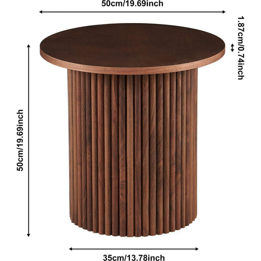 Walnut Wood Veneer Tabletop 19.69 Inch Round Coffee Table, Farmhouse Circle Coffee Table MDF Table-top with Metal Base, Sofa Side Table for Living Room, Reception Room
