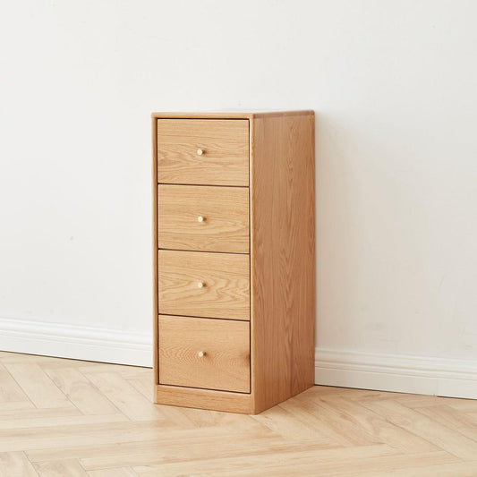 Solid Oak Bedside Table Storage Cabinet for Living Room - Free-Standing Corner Cabinets Storage Table-Four Drawers