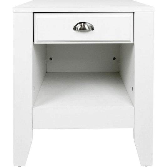 Three levels of bedside tables. The board surface is MDF, with white stickers, and both sides are transparent tempered glass. The design is simple and generous, with storage function.