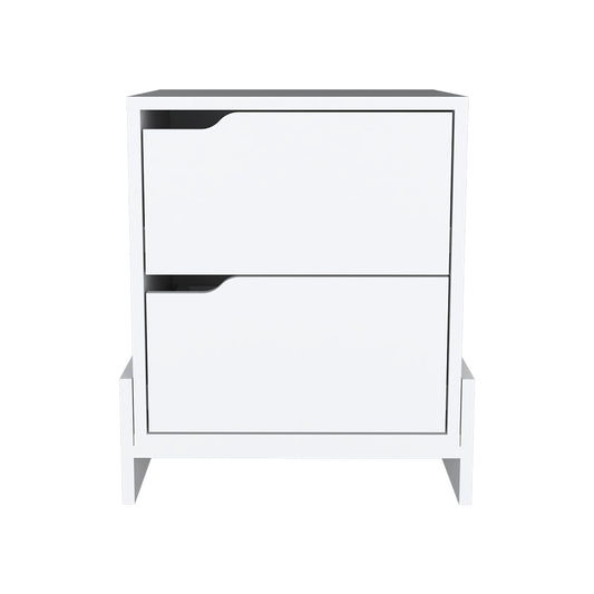 Nightstand Brookland, Bedside Table with Double Drawers and Sturdy Base, White Finish