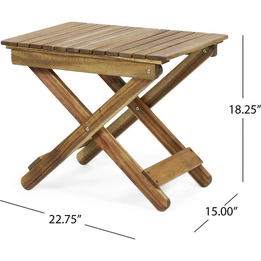 Outdoor Folding Wooden Side Table, Natural, 15"D x 22.75"W x 18.25"H