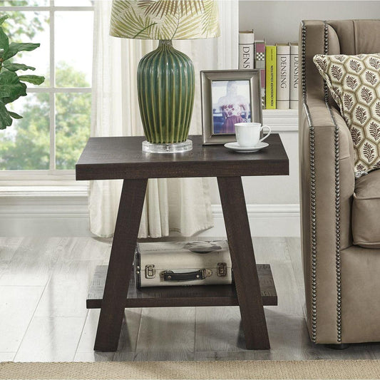 Athens Contemporary Wood Shelf End Table in Weathered Espresso