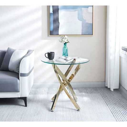 Woker Furniture 20" Wide Square End Table with Black Glass Top, Golden Stainless Steel Tempered Glass End Table for Living Room&Bed Room