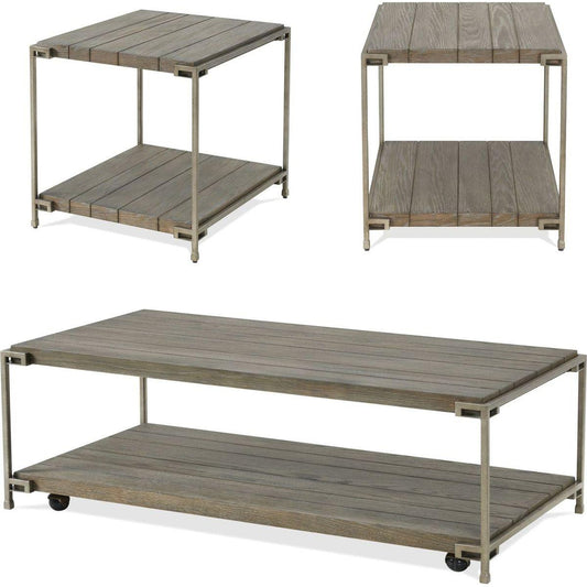 Padena 3-Piece Metal Frame Wood Living Room Coffee Table and 2 End Tables Set