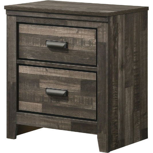 Contemporary 2-Drawer Nightstand End Table Brown Mixed Finish Two Storage Drawers Black Finished Handles Bedroom Furniture