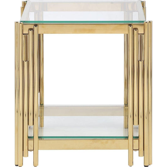Woker Furniture 20" Wide Square End Table with Glass Top, Golden Stainless Steel Tempered Glass Coffee Table for Living Room&Bed Room