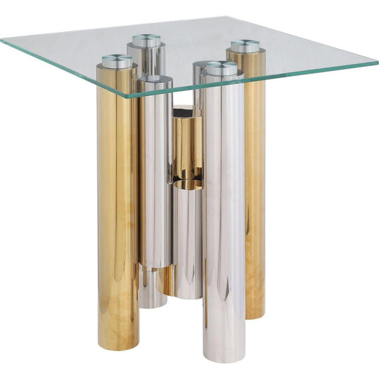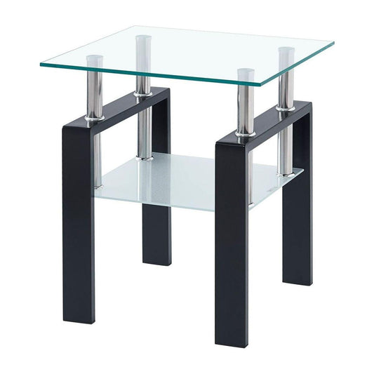 Stainless Steel Square Glass End Table for Living Room- 20" Modern Sleek Center Table Table with Clear Tempered Glass