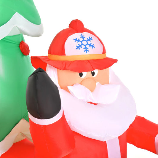 HOMCOM 7.5ft Christmas Inflatable Santa Claus Driving a Fire Truck with Tree, Outdoor Blow-Up Yard Decoration with LED Lights Display