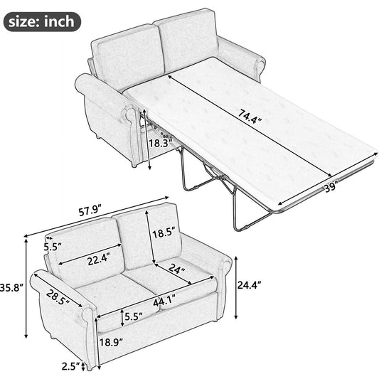 57.9' Orisfur Pull Out Sofa Bed Loveseat Sleeper with Twin Size Memory Mattress with Two USB Ports for Living Room Spaces (Old SKU:WF305474AAE), Grey