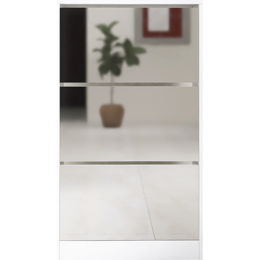 Narrow Shoe Storage Cabinet with Mirror, Wood Slim Shoe Rack 3 Tier Shoe Organizer for Home and Apartment, White