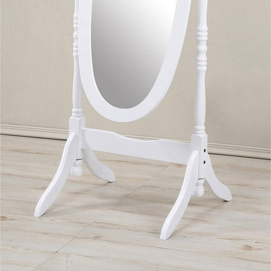 Traditional Queen Anna Style Wood Floor Cheval Mirror, White Finish