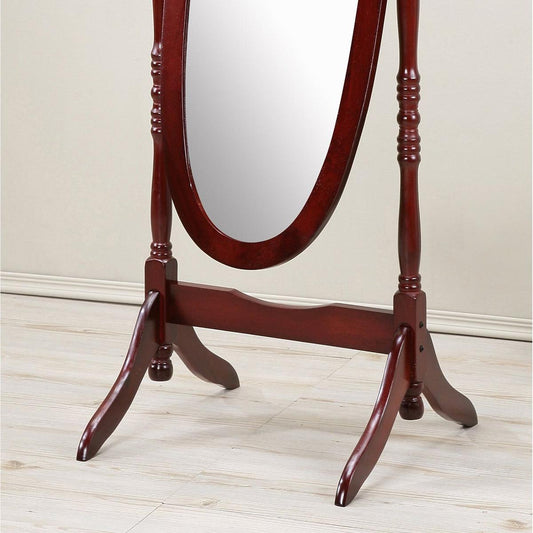 Traditional Queen Anna Style Wood Floor Cheval Mirror, Cherry Finish