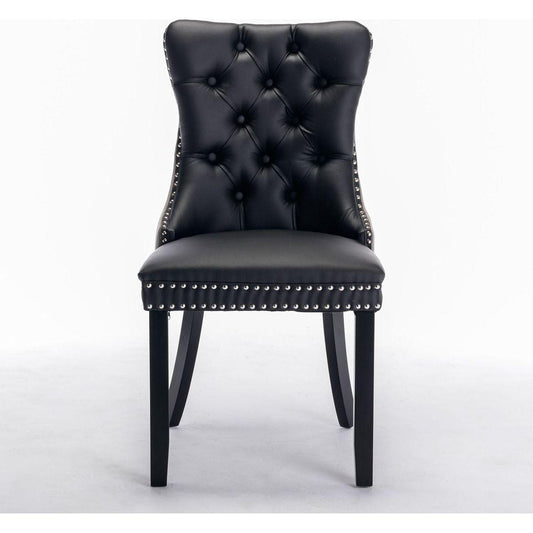 Nikki Collection Modern, High-end Tufted Solid Wood Contemporary PU and Velvet Upholstered Dining Chair with Wood Legs Nailhead Trim 2-Pcs Set Black+Gray