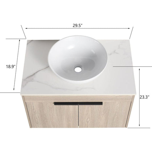 30" Modern Design Float Bathroom Vanity With Ceramic Basin Set, Wall Mounted White Oak Vanity With Soft Close Door, KD-PackingD-Packing Pieces
