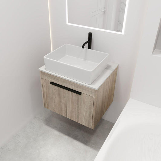 24" Modern Design Float Bathroom Vanity With Ceramic Basin Set, Wall Mounted White Oak Vanity With Soft Close Door, KD-PackingD-Packing Pieces