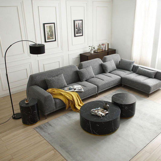 Modern Faux Marble Coffee Tables for Living Room, 35.43inch Accent Tea Tables with Gold Metal Base (Black)