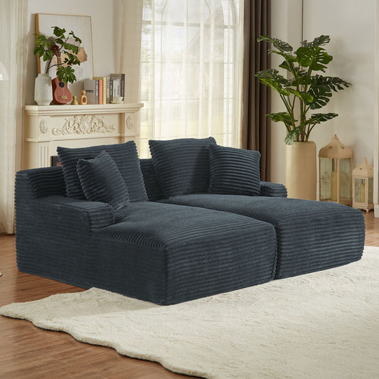 Compressible double chaise lounge - No Assembly Required, Fluffy Modern Sleeper Loveseat for Indoor Living Room Bedroom Reading
