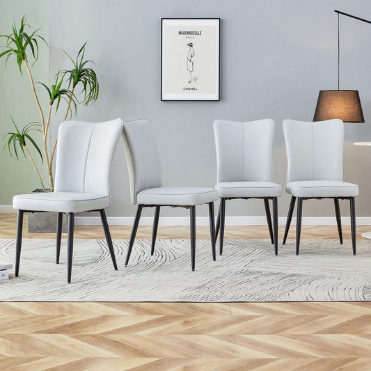 Modern minimalist dining chairs and office chairs. 4-piece set of light gray PU seats with black metal legs. Suitable for restaurants, living rooms, and offices.